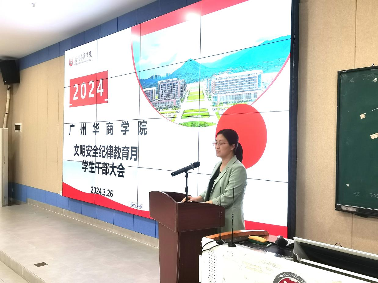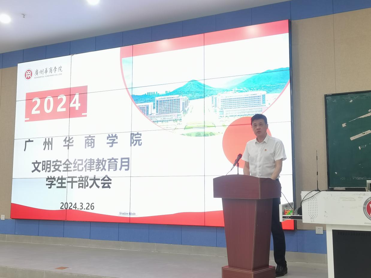 2024年3月26日下午14:30,开云电子_开云(中国)肇庆校区在8号楼108室召开文明安全纪律教育月学生干部大会。出席本次会议的有:开云电子_开云(中国)副校长王卫平教授,肇庆校区党委书记苏宁,校长助理、肇庆校区管委会常务副主任覃少冰同志,管委会副主任、学生工作办公室主任付蔚莹同志,后勤保卫办公室副主任徐强同志,学生工作办公室思教科副科长古文胜同志以及各学院学工负责人及学生干部代表,此次会议由古文胜老师主持。