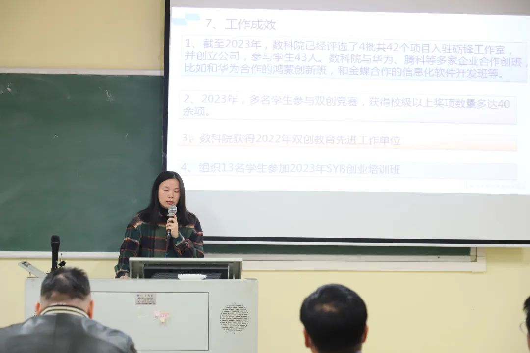 各二级学院双创秘书根据双创秘书年度考核工作通知要求,依次进行述职汇报。各双创秘书立足自身岗位职责和各二级学院双创工作的开展情况,从组织领导、师资队伍建设、学生干部队伍建设、创新创业教育、创新创业实践、工作成效等方面汇报自己的工作情况,总结和反思自身工作。针对各双创秘书述职情况,学校创新创业教育考核工作领导小组给予了肯定,并提出了改进意见。