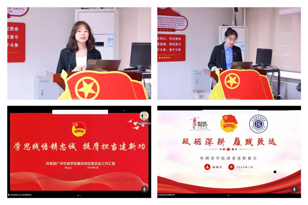 会上,各基层团组织负责人根据述职顺序围绕学院中心工作、团的重点工作,结合团员和青年主题教育开展情况,聚焦思想政治引领、基层组织建设、深化改革、服务青年、校园文化活动、社会实践、志愿服务等等几大板块展开述职汇报。全面总结回顾本组织一年来各项工作,分析工作中前存在的问题和困难,并提出2024年的工作计划,充分展现各基层团组织的务实工作态度和良好工作成效。