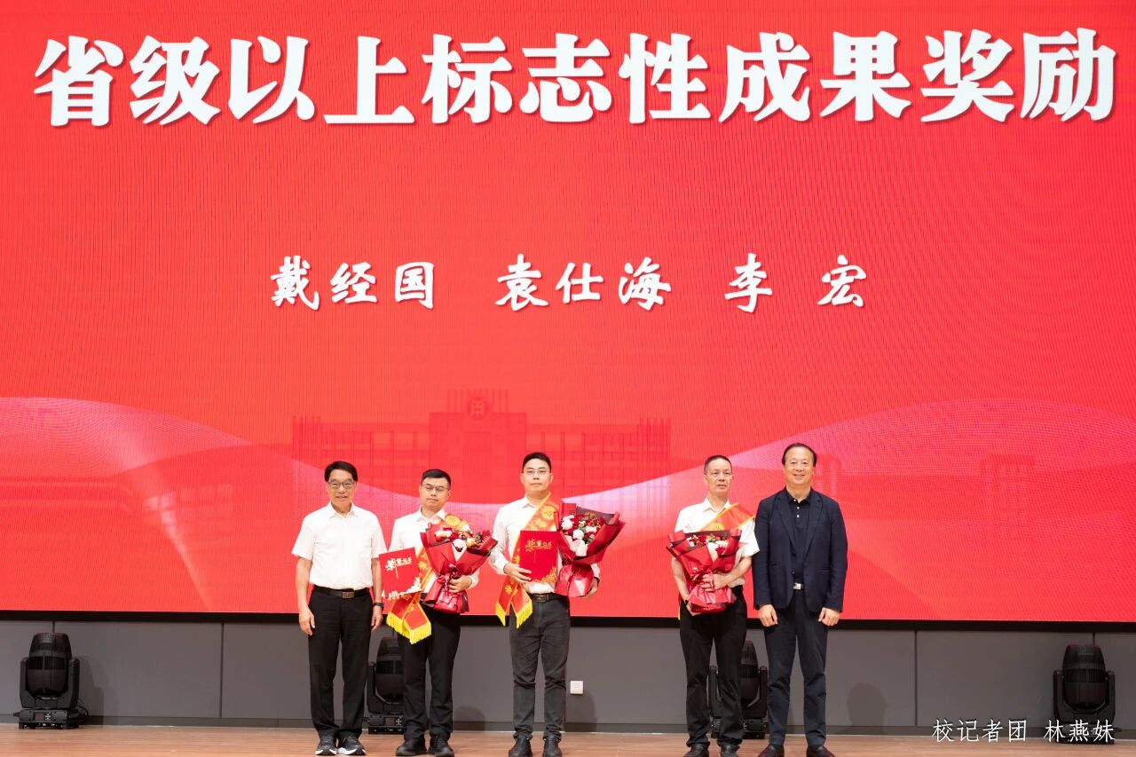 大会进入表彰及颁奖环节,与会领导依次为获得各级各类荣誉的教职工颁发证书。