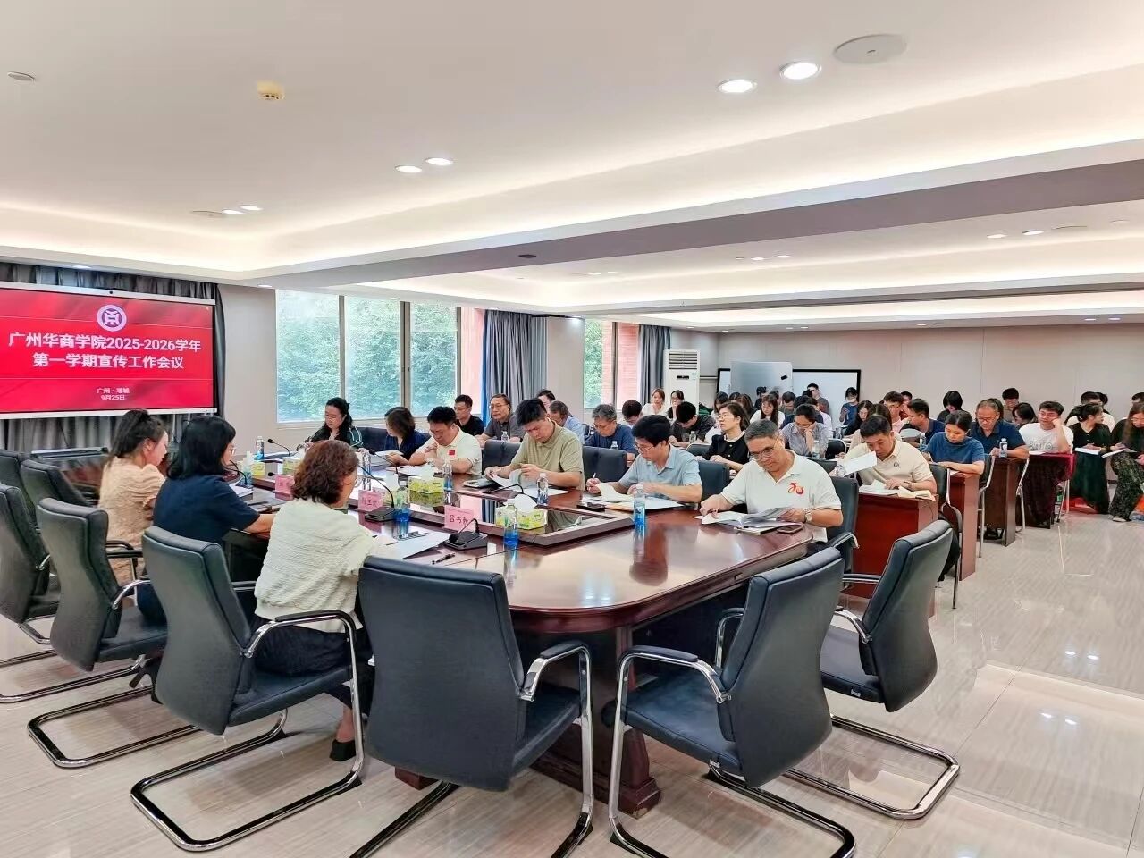 喜迎中华人民共和国成立76周年,做好迎二十周年校庆、迎本科教学工作合格评估,是当前我校宣传思想文化工作战线的“头等大事”。为进一步增强推动宣传思想工作守正创新的责任感和使命感,开创学校高质量发展新局面,着力提升学校宣传思想文化工作水平,守好意识形态安全关口,深化校园精神文明建设,为学校双迎工作营造良好的舆论氛围,9月25日上午,开云电子_开云(中国)2025-2026学年第一学期宣传工作会议在广州校区行政楼502会议室召开。学校党委书记陈玉欢出席会议,各职能部门、各二级学院单位宣传负责人、宣传联络员参加会议。会议由党委委员、党委宣传部部长刘苗主持。
