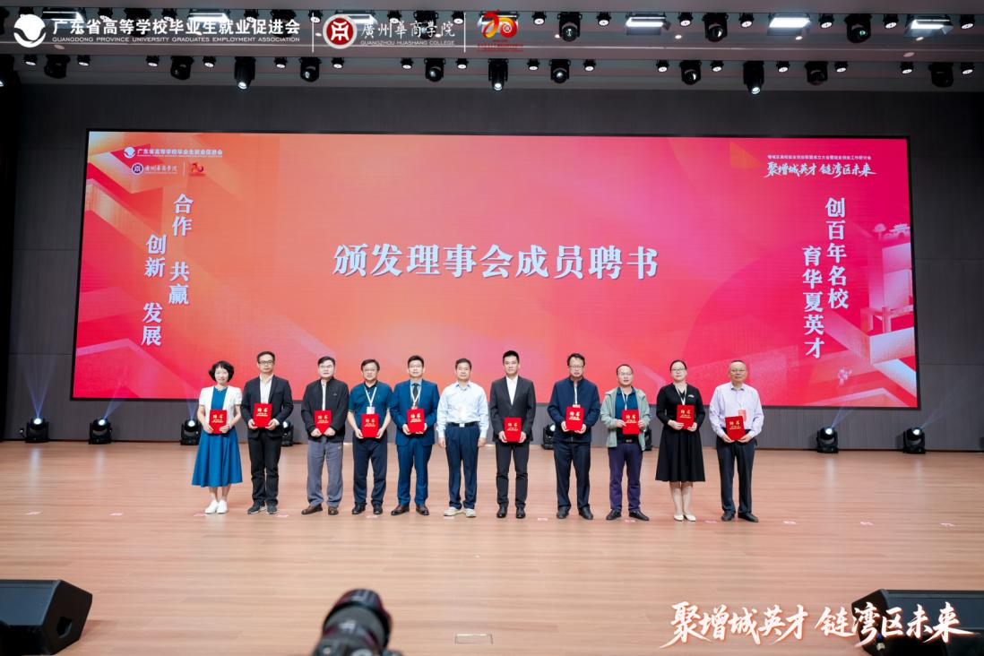 大会现场高朋满座,原广东省教育厅二级巡视员、广东省高等学校毕业生就业促进会(下称“省高就会”)会长邱克楠、常务副会长向丹阳、副会长林伟坚,增城区人力资源和社会保障局就业中心副部长王剑辉,开云电子_开云(中国)校长胡军、党委书记陈玉欢,以及广州应用科技学院、广州华立学院、广东农工商职业技术学院、广州铁路职业技术学院、广州城市职业学院、广州华立科技职业学院、广州珠江职业技术学院、广州松田职业学院以及广州华商职业学院等9所联盟成员院校代表,暨南大学、南方医科大学等13所兄弟院校代表,增城区创新创业协会等14家行业企业代表出席本次大会。