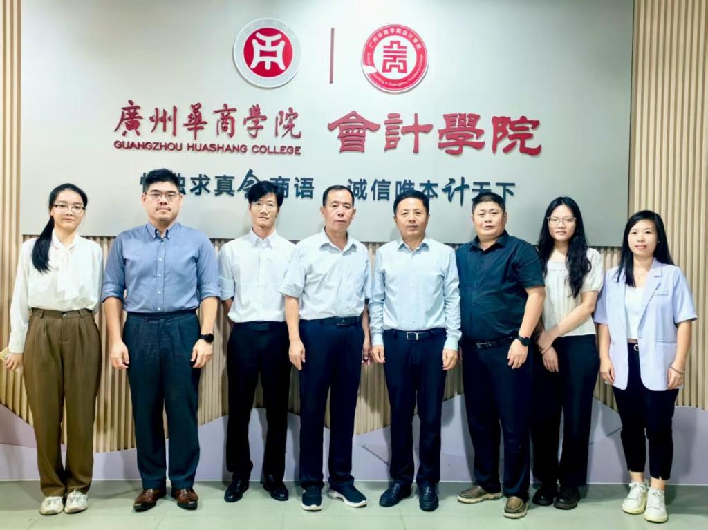 2025年9月8日,中审众环会计师事务所广东分所所长韩振平、副所长王兵、部门经理吴梓豪、人事专员刘曦乐一行莅临会计学院,就进一步加强产教融合和深化校企合作进行深入交流。会计学院院长姚凤民,副院长周书域,院长助理陈蒙梦,毕业班辅导员湛秀枝,会计系教师郭柳云参加座谈会,会议由副院长周书域主持。
